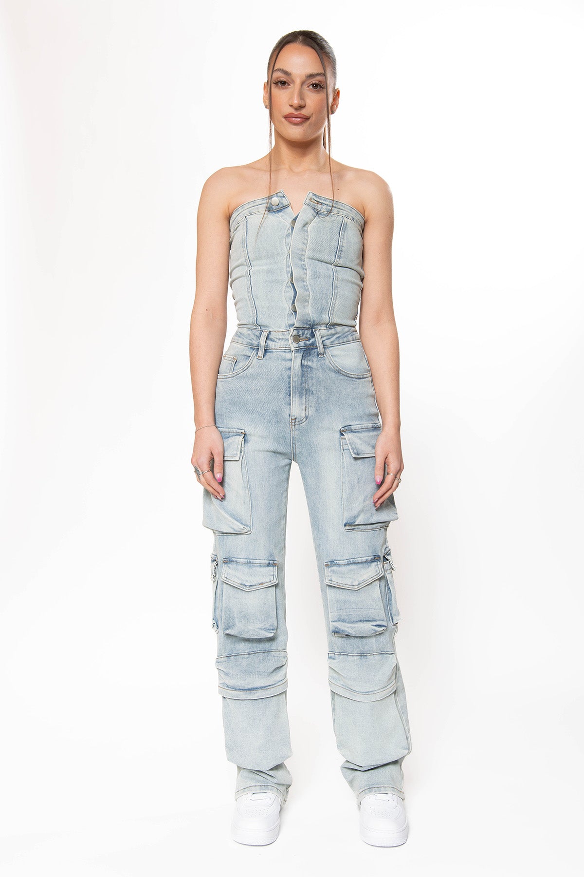 Kenzie Stretch Multipocket Cargo Denim Jumpsuit Jumpsuit Routines Fashion