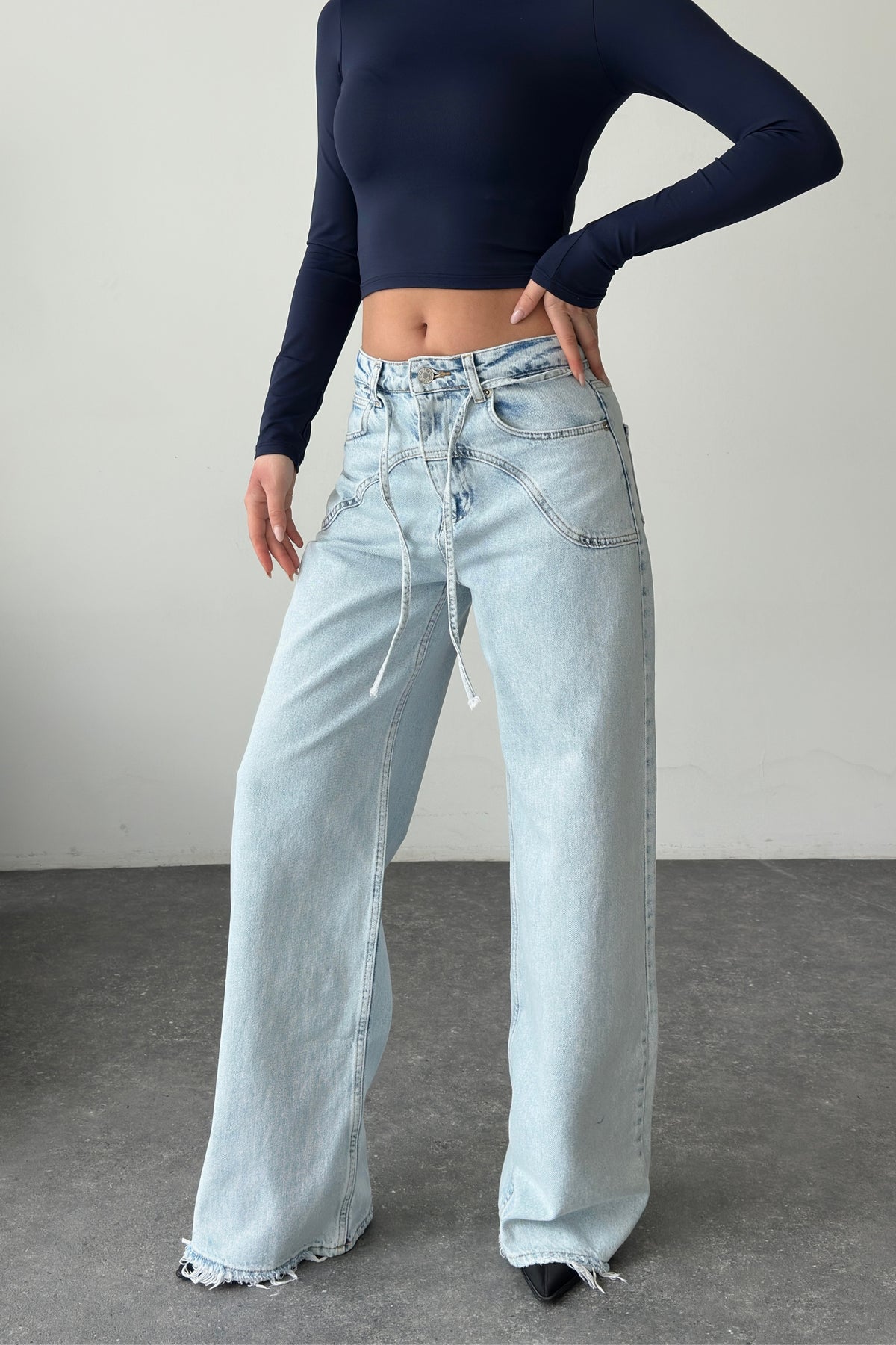 Routines Drawstring Detail Jeans - Light Blue 3734