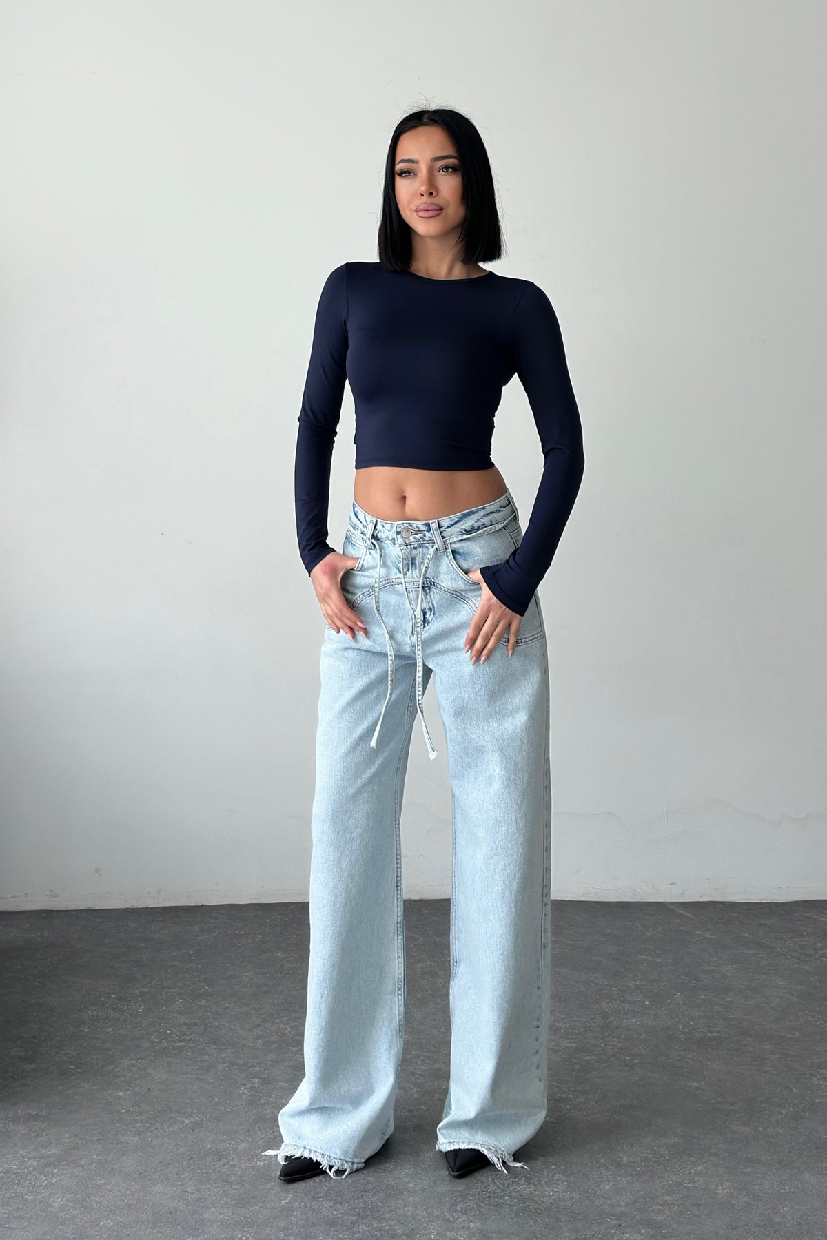 Routines Drawstring Detail Jeans - Light Blue 3734 Jeans Routines Fashion