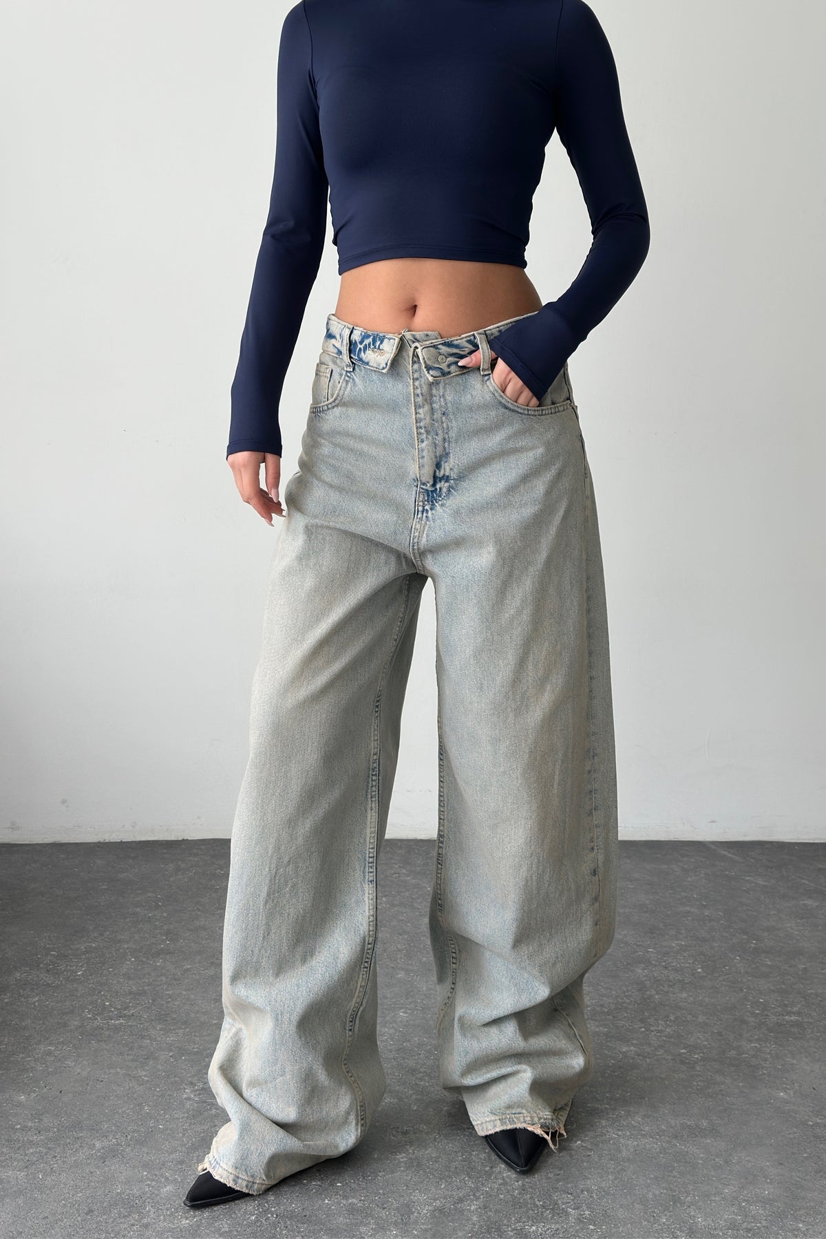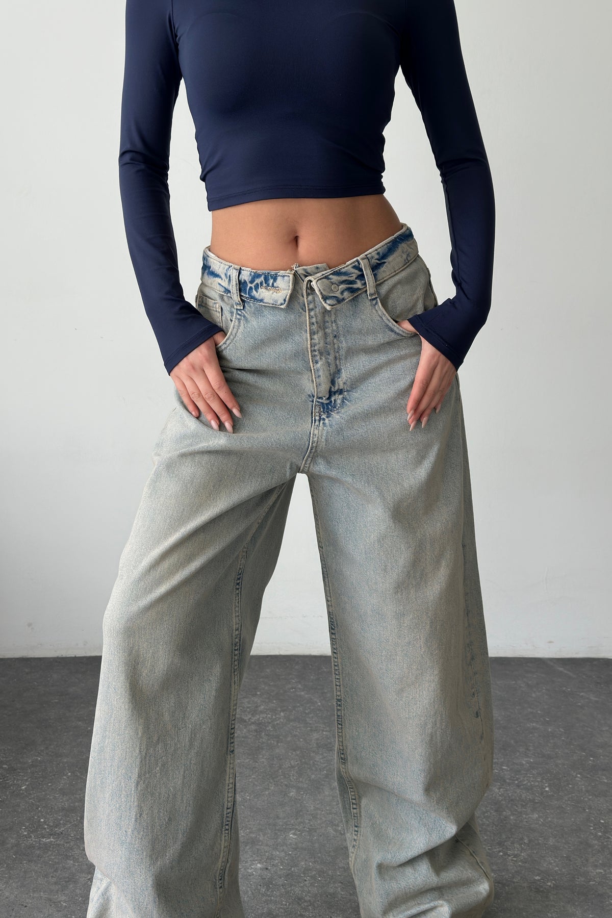 Routines Folded Waist Baggy Jeans - Vintage Tint 3721 Jeans Routines Fashion