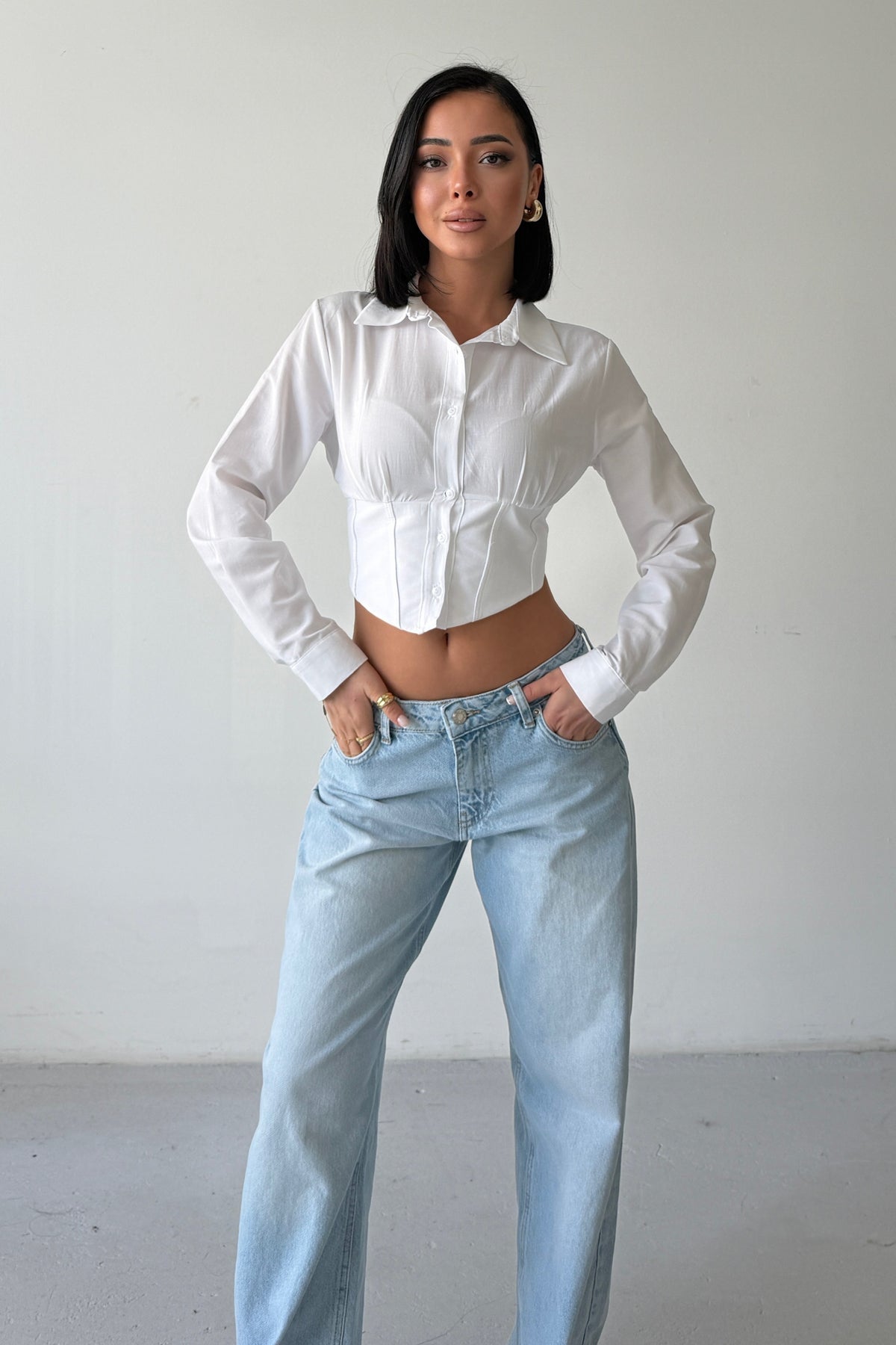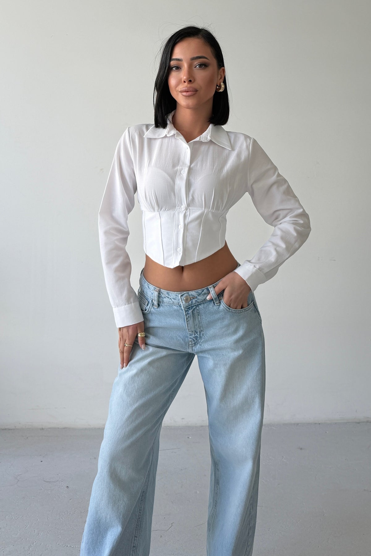 • Routines Snatched Cropped Blouse - White 0301