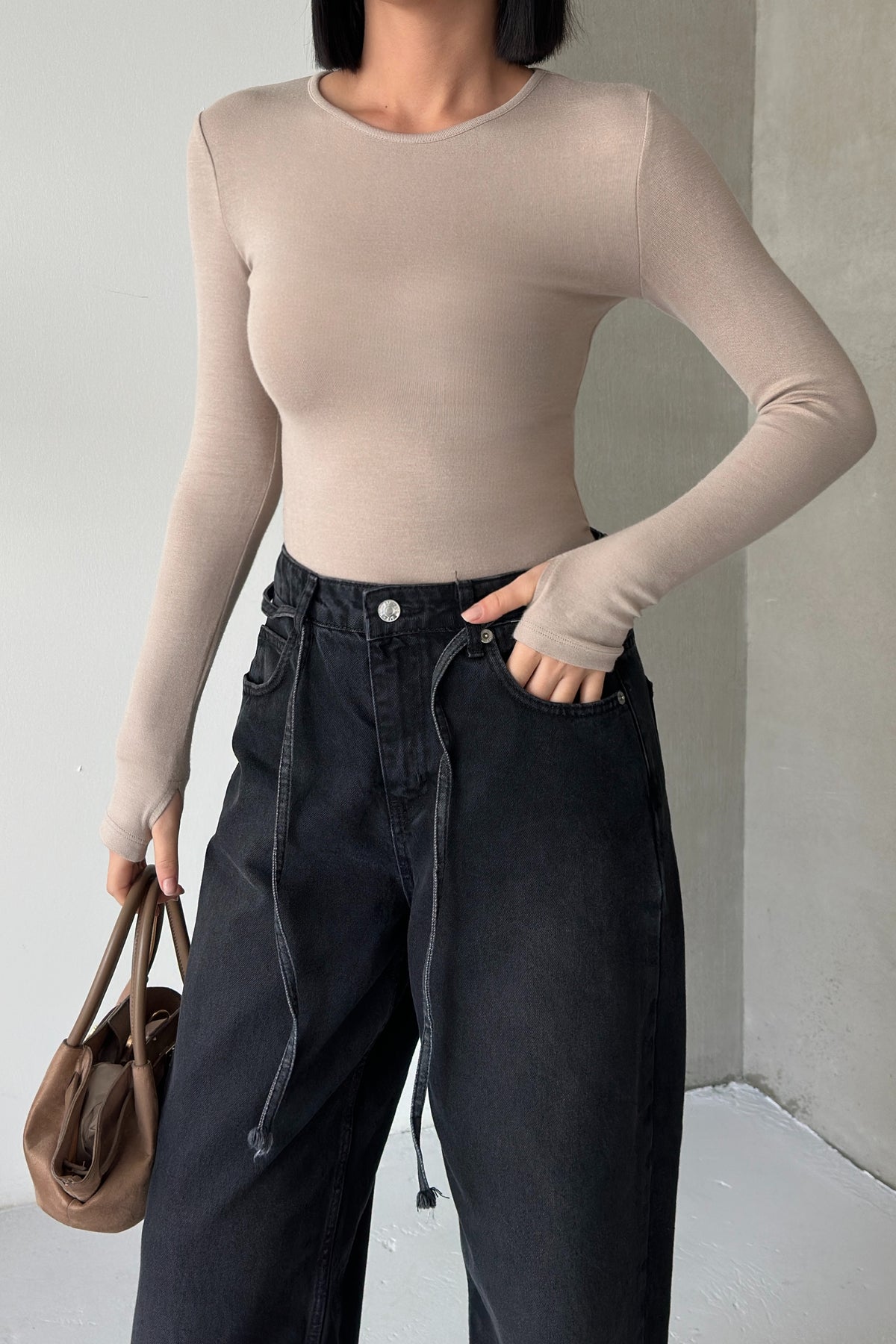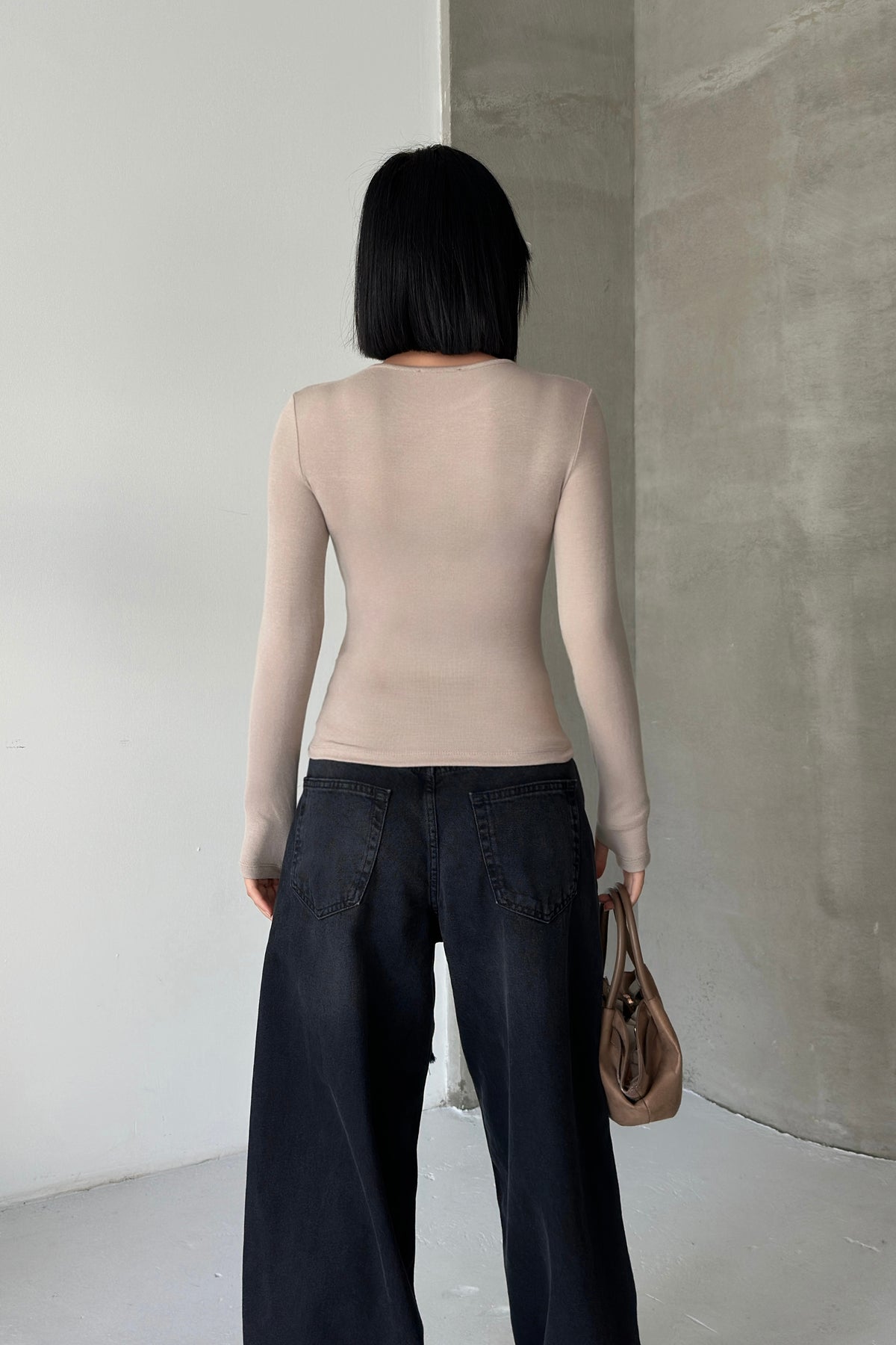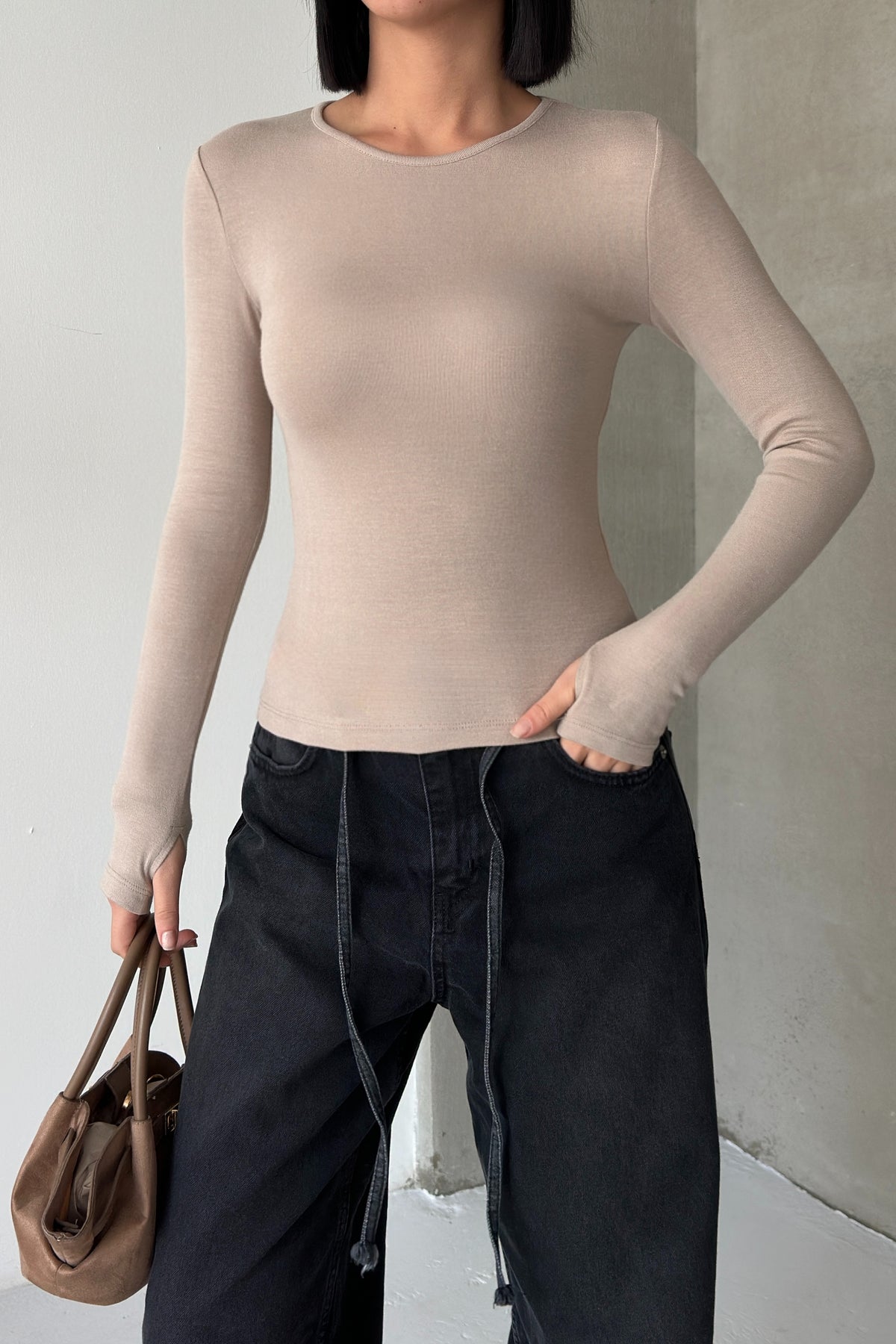 Routines Stretch Longsleeve Top - Stone 392 Top Routines Fashion