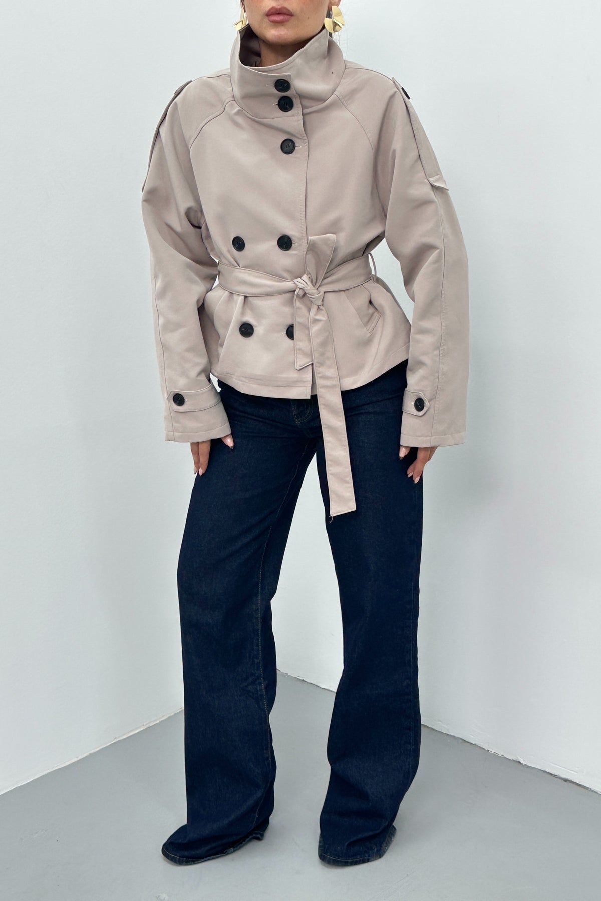 Routines Cropped Trench Coat - Stone 8030