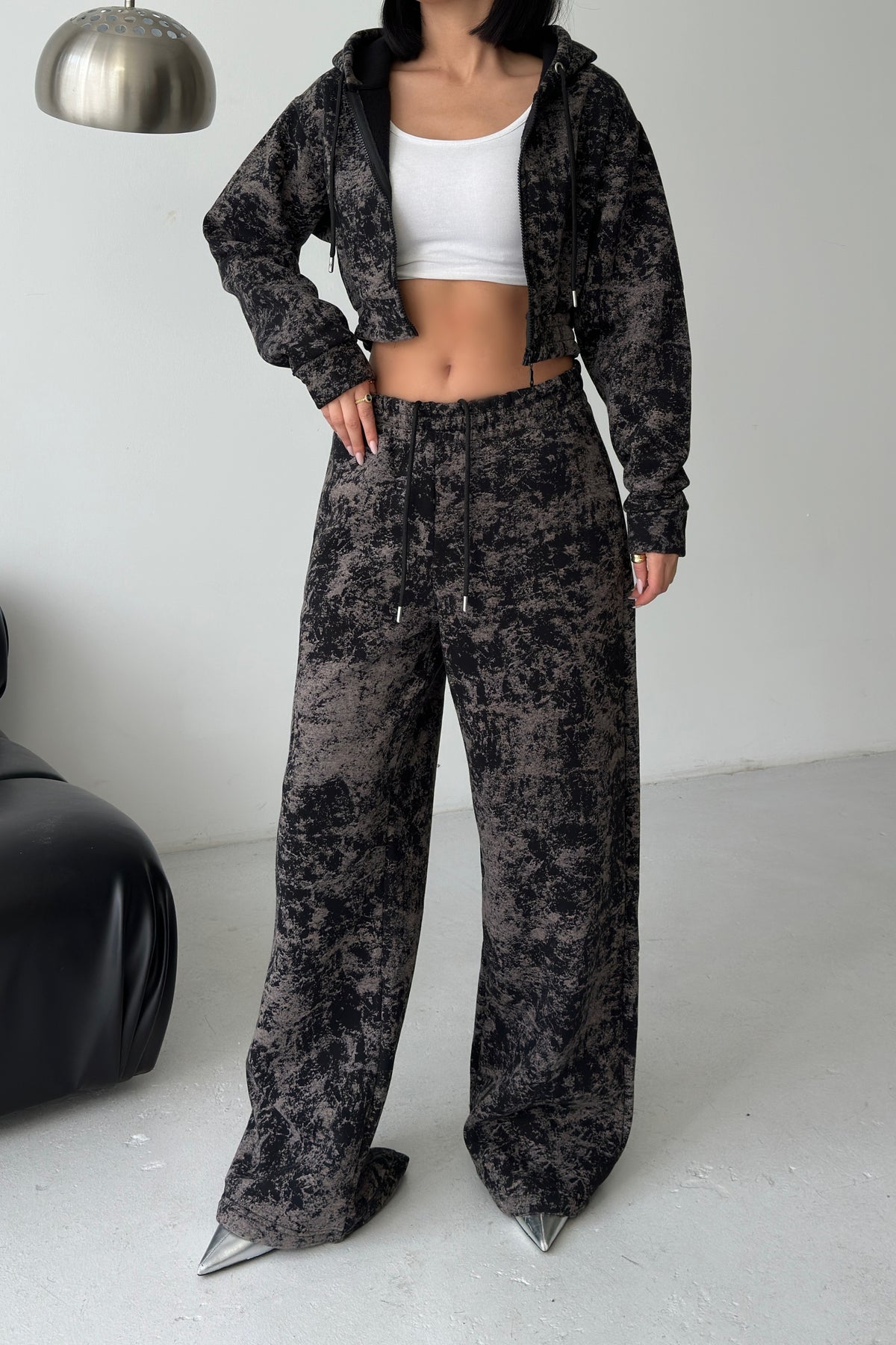 • Routines Pattern Hooded Tracksuit - Black 3642