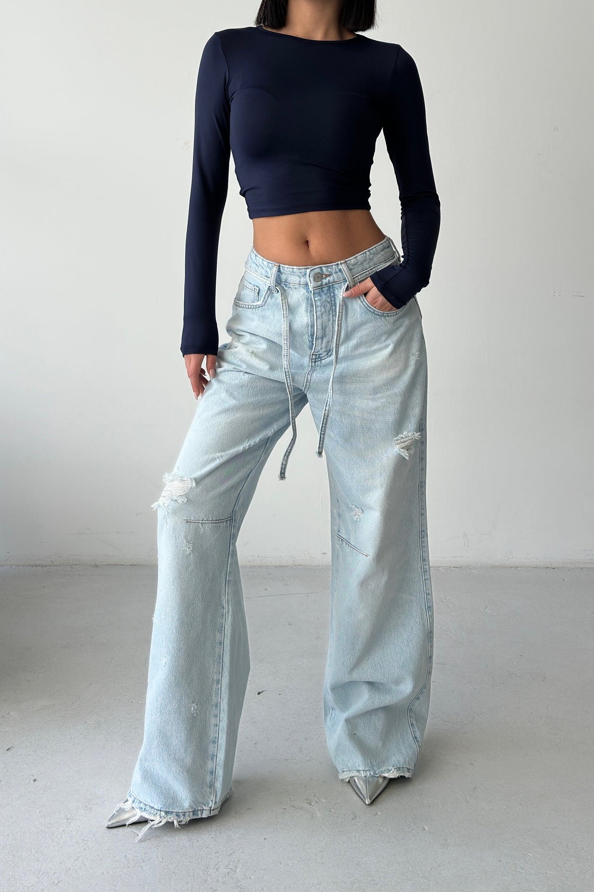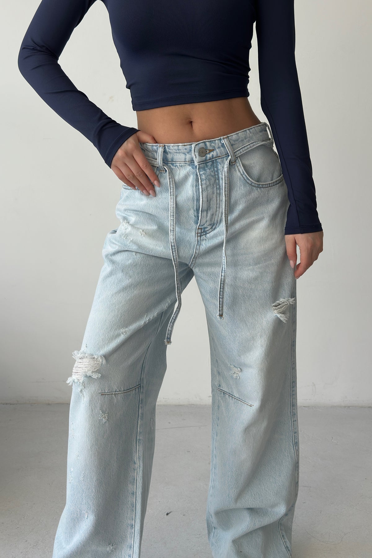 Routines Ripped Drawstring Jeans - Light Blue 1203-9